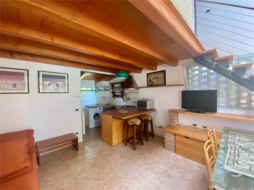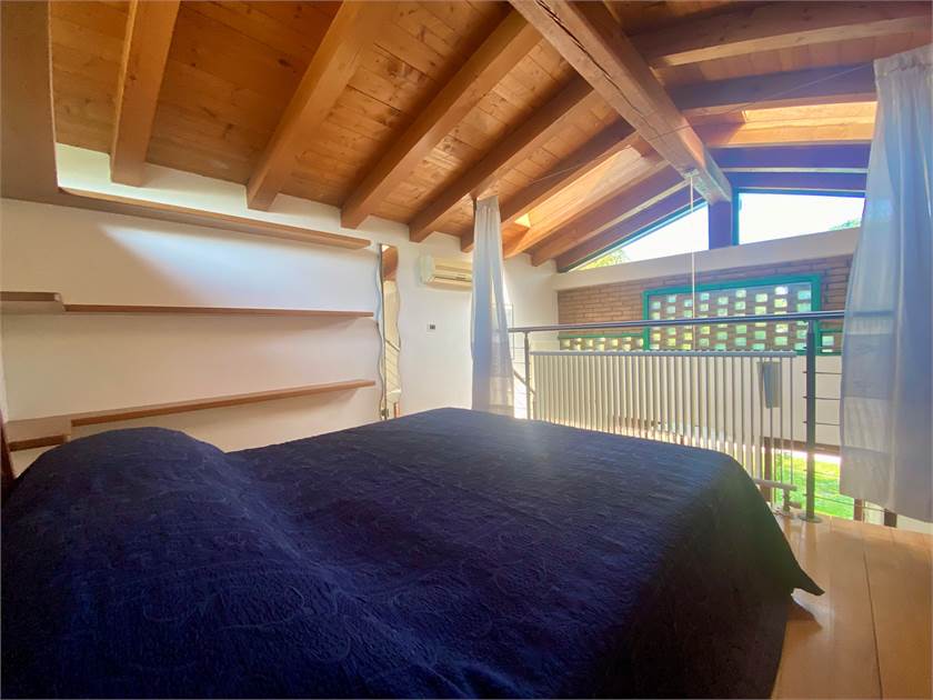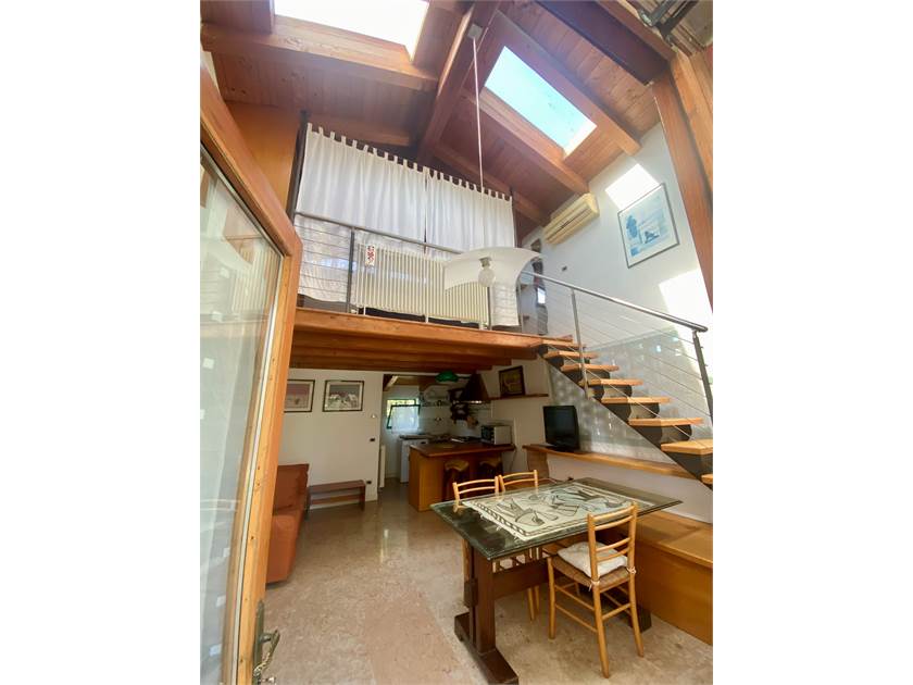 Piante ed alberi di tutti i tipi e diversi posti auto completano la componente "condominiale", entrando in casa invece troviamo una zona giorno ed il bagno al piano terra, letto ed armadio sul soppalco.