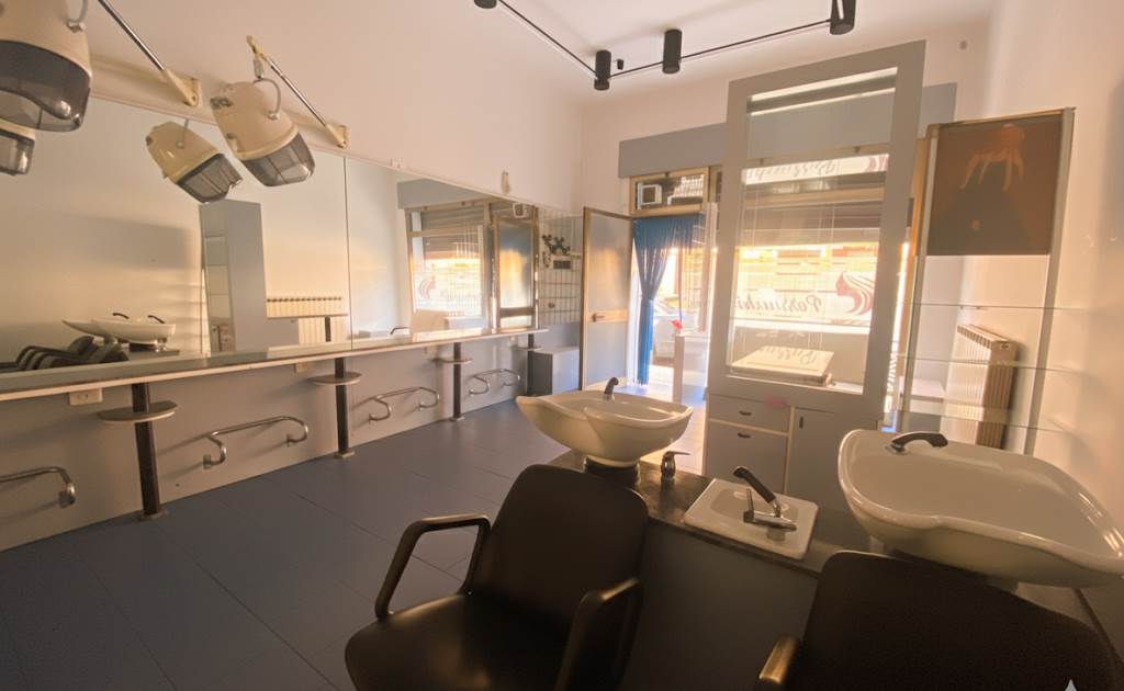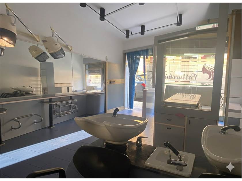 Negozio in affitto, attualmente arredato ed accessoriato come salone di parrucchiera.