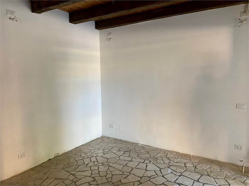 L'immobile, in posizione centralissima, di compone di una stanza di 25 mq, di un retro di 15 mq, di bagno, antibagno e magazzino. Davanti la vetrina la proprietà esclusiva del passaggio (circa 20 mq) consente di esporre la merce, eventuali tavolini, ecc.