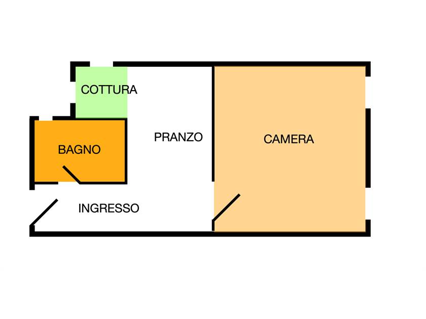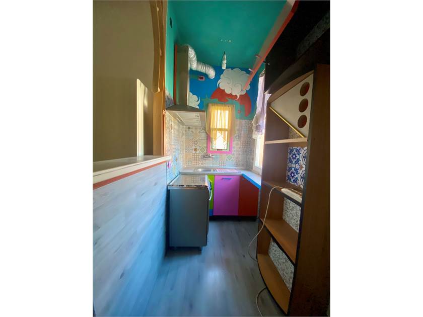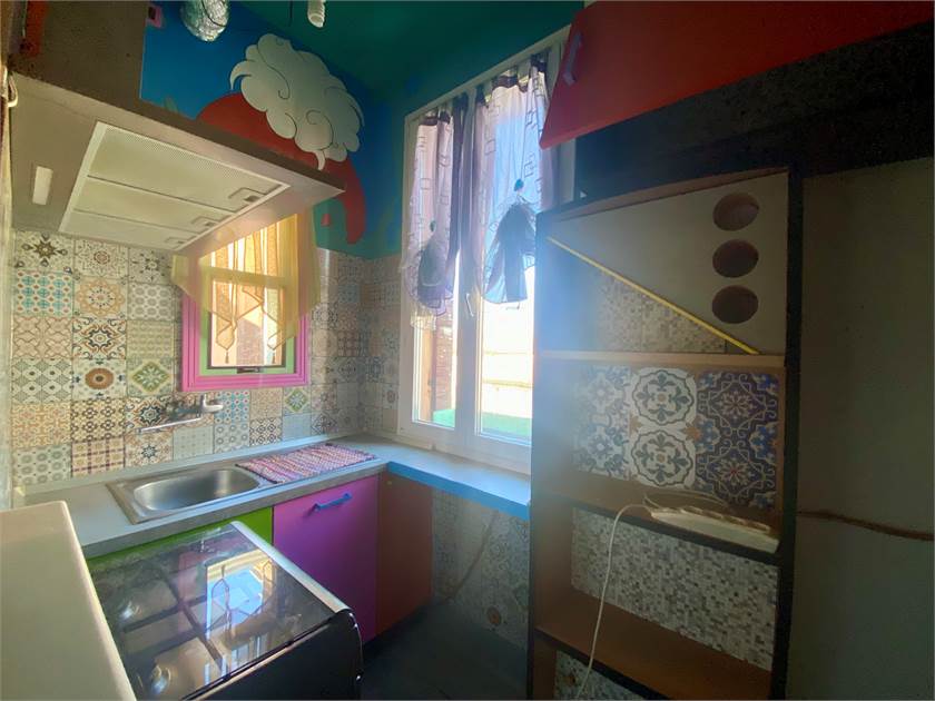 Un bagno comodo e finestrato, una zona giorno con una cucina ad angolo e con delle affascinanti finestre che ti consentono di guardare il panorama quando lavi i piatti ed una camera molto grande, 18 mq.