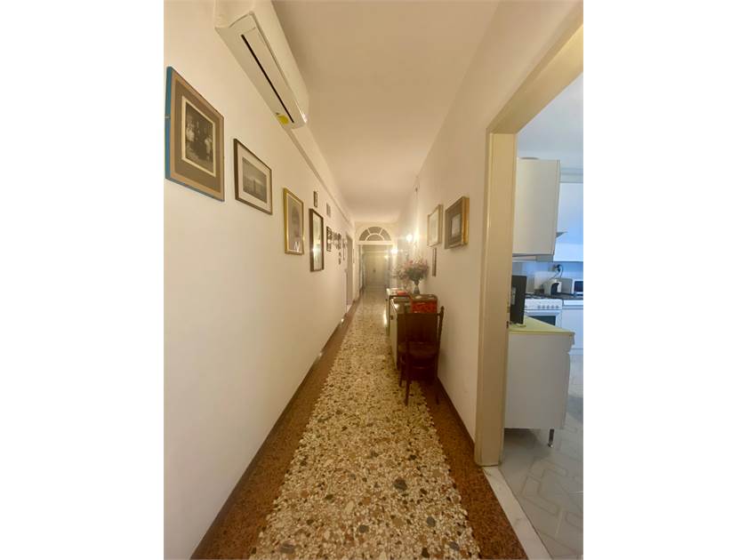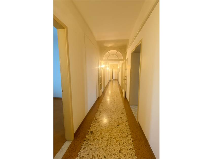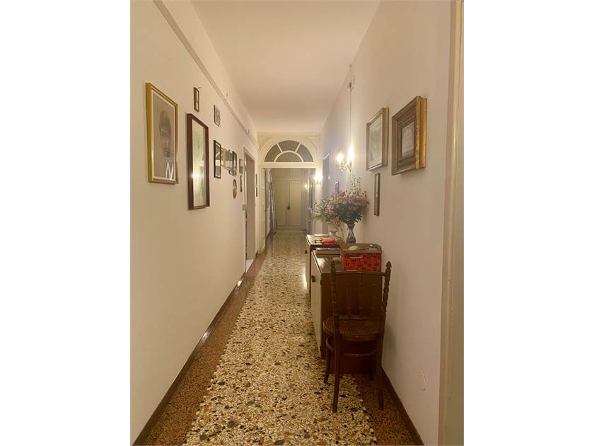 Durante il restauro degli anni ’90 sono stati impiegati materiali di pregio: pavimenti in legno nelle zone giorno e notte, ceramiche in cucina e un fantastico marmo alla veneziana originale d’epoca nel corridoio. Gli infissi, elegantemente restaurati, conservano i telai originari con l’aggiunta del doppio vetro, una scelta molto più onerosa della semplice sostituzione ma che consente di conservare il fascino originale.